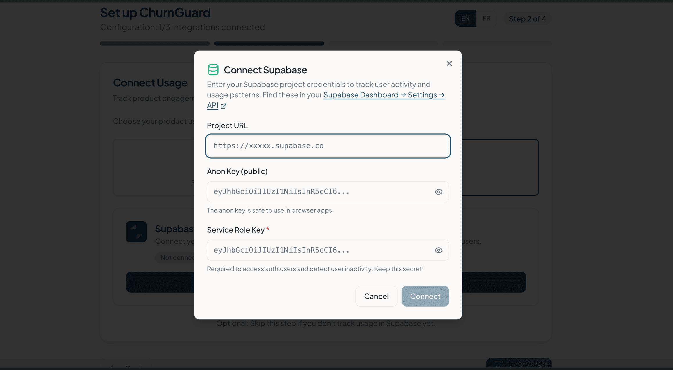 ✅ Vos clés API sont chiffrées et stockées de façon sécurisée. ChurnGuard ne les partage jamais avec des tiers.