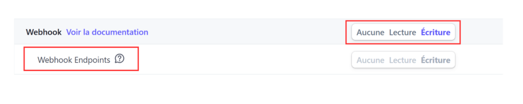 - Et « ECRITURE » pour l’évènement « webhook_endpoint ».