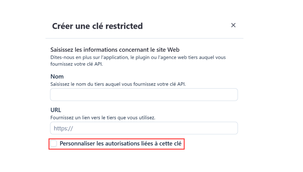 2- Une fenêtre s’ouvre et vous demande votre Stripe API Key.